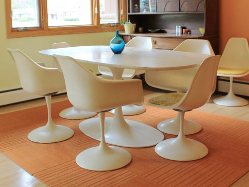 Ever heard of Eero Saarinen? Not only was he one of the most brilliant and influential designers of the mid-century, he masterminded the design of the “tulip” table and chairs. I would need a smaller one for the space, perhaps an oval-shaped table top….and I may or may not go for matchy-matchy chairs….but you have to admit, no matter your personal preferences, this is just beautiful design. And wouldn’t it just look FAB in my kitchen?
