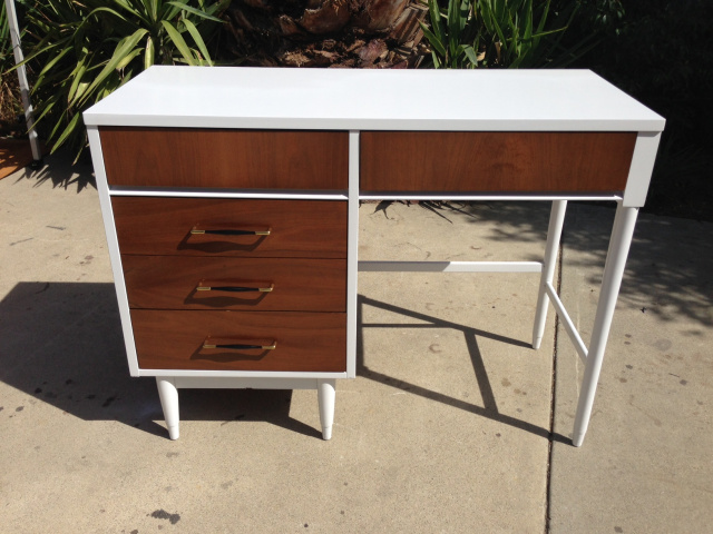 1. I completely agree with you about not painting a MCM piece in great condition. Often though, pieces have a bit of damage here and there in the veneer and if you don’t want to do a full restoration why not go ahead and patch and paint? I love the way the lines of the pieces are accentuated by the contrast of the wood and paint.