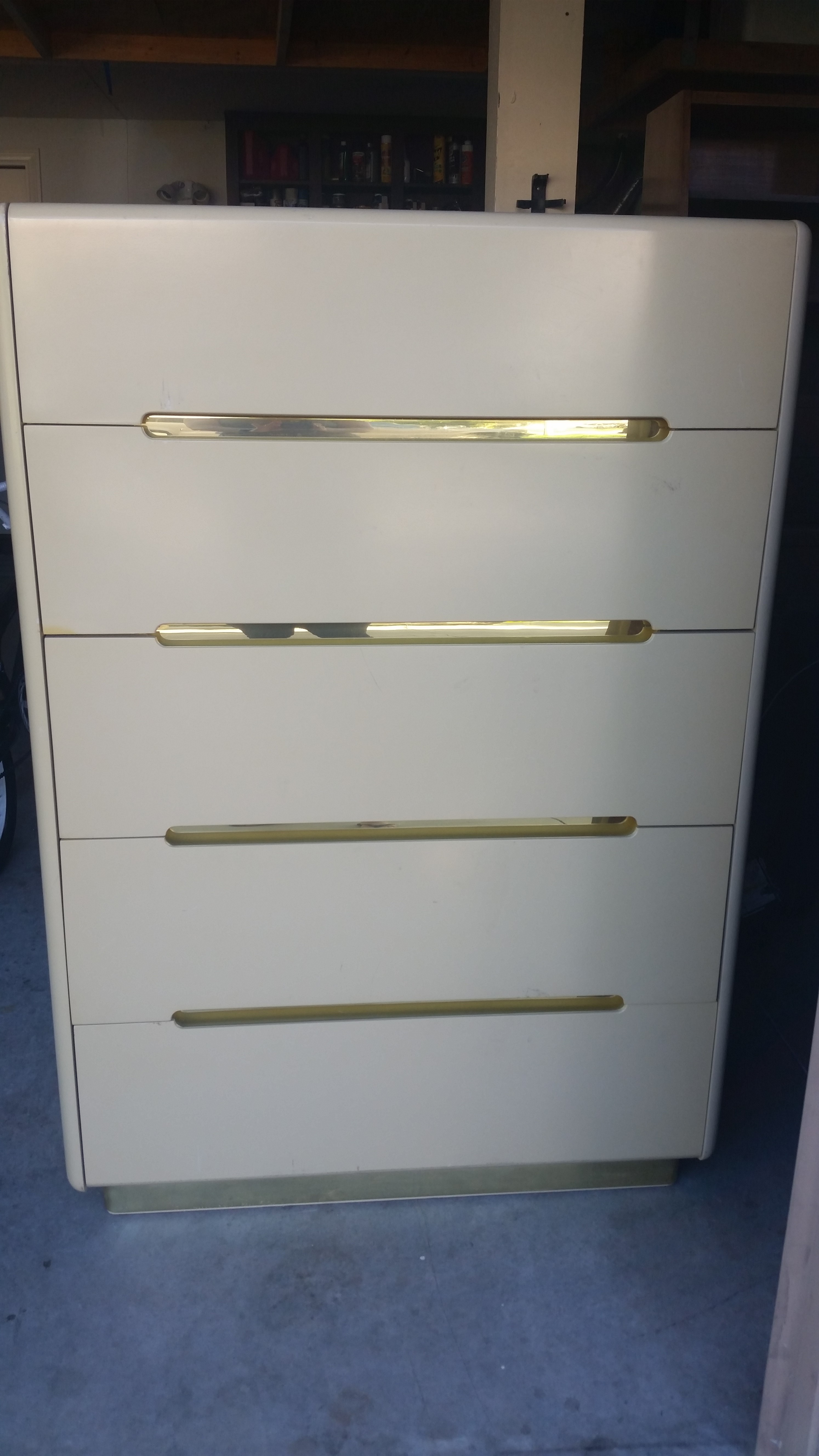 Can you believe it?! Initially, part of me went, “Ew. 80’s.” The other part of me fell in love. My second thought was, “Holy Crap! Those pieces are gorgeous and totally relevant today!” Used together or separately, these beautiful pieces made by Lane are functional and fantastic in all their glam glory. If you ever read Emily Henderson’s blog…she’d probably tell you that you need to buy these. Like now. Metallics on cream or white? So on trend.