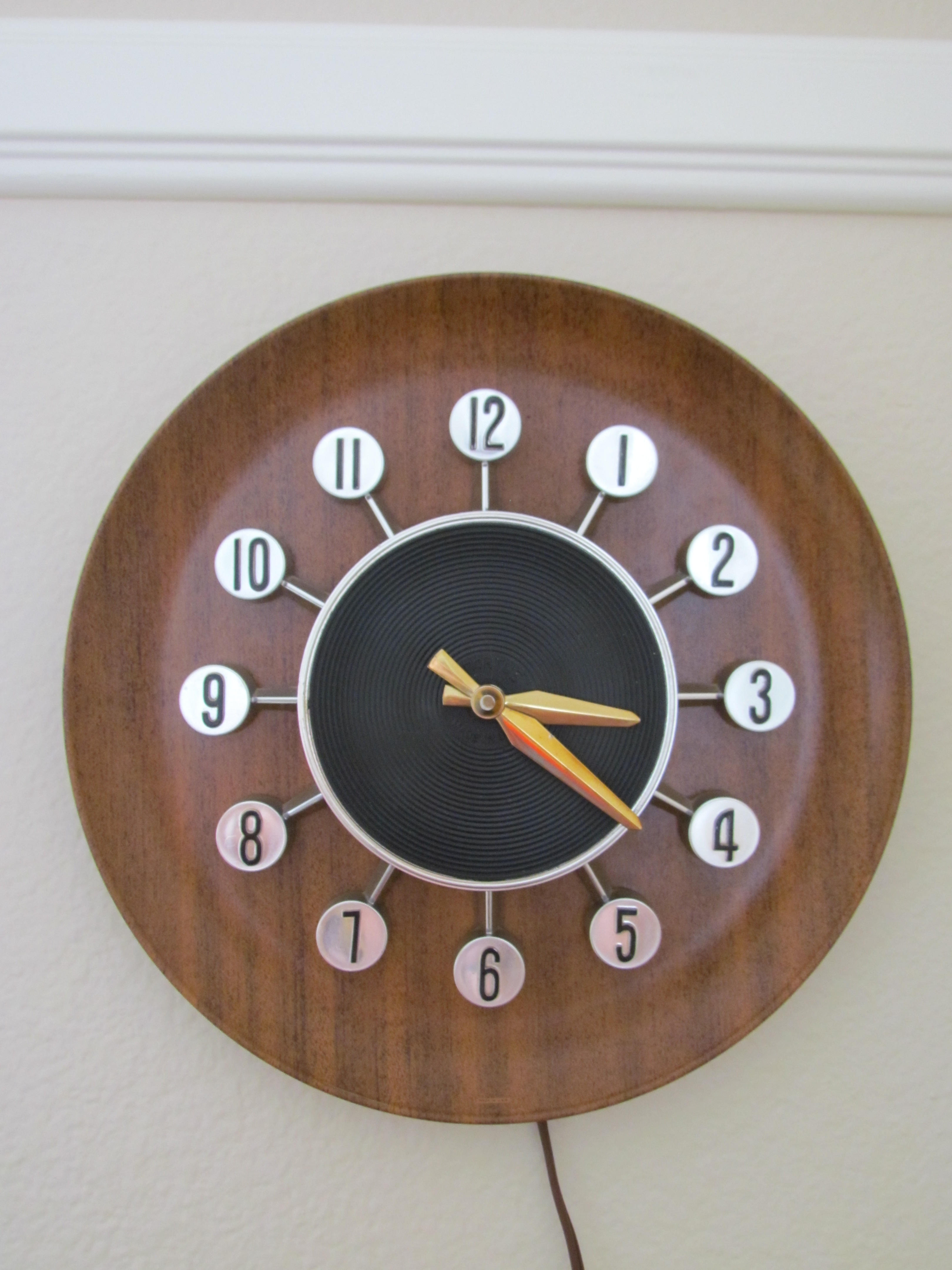 So here’s my idea. The same Etsy shop owner that sold me the atomic clock also has a matching set of orange lights. I’m thinking one MUST go on each side table if I can find a home for my ginormous ceramic lamp.