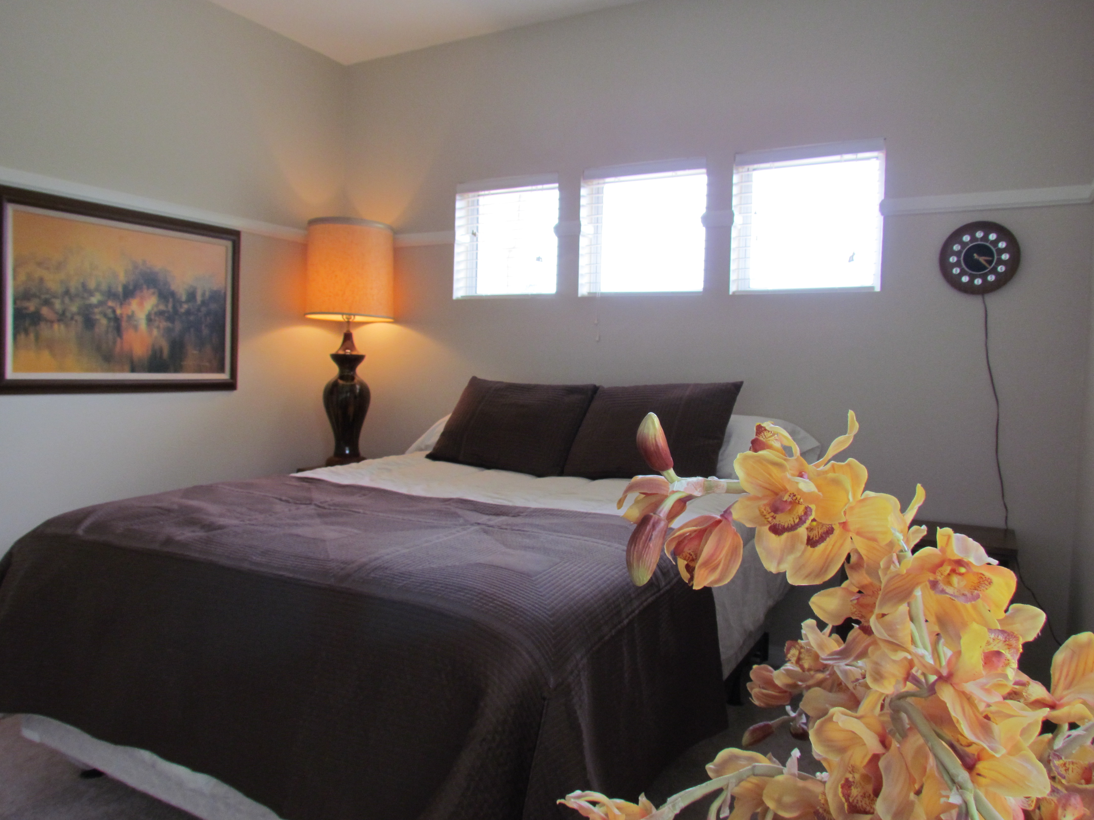 I recently began work on my guest bedroom. I’d hoped that someday it would be a nursery, but I’m not sure that will happen for our family anytime soon. Needless to say the room has been largely neglected as a result of creative avoidance and we actually do have overnight guests from time to time. We had the bed and bedspread already. What I needed were basic decorative items and night stands. Today, I picked up some gorgeous solid wood night stands for a great price on none other than Craigslist. The seller was awesome and easy to work with. That’s not always the case. My new little night stands fit the small bedroom perfectly. However, I’m left with the feeling that it’s not quite finished yet. As pretty as the night stands are, and as atomic and fabulous as my new vintage wall clock is, the room is still missing something. Can you help me figure out what that is?
